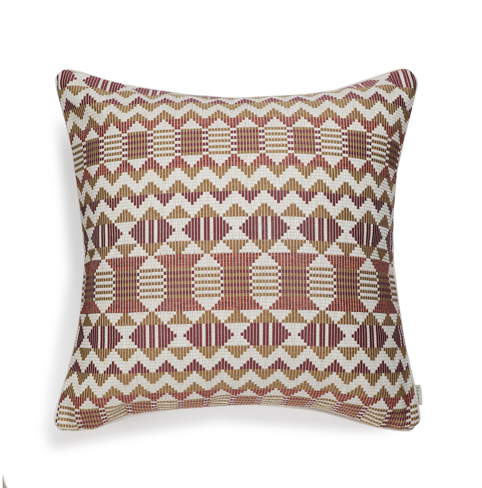 SAFI - outdoor cushion cover etnic 60 x 60 cm - ivory with camel, orange & burgundy